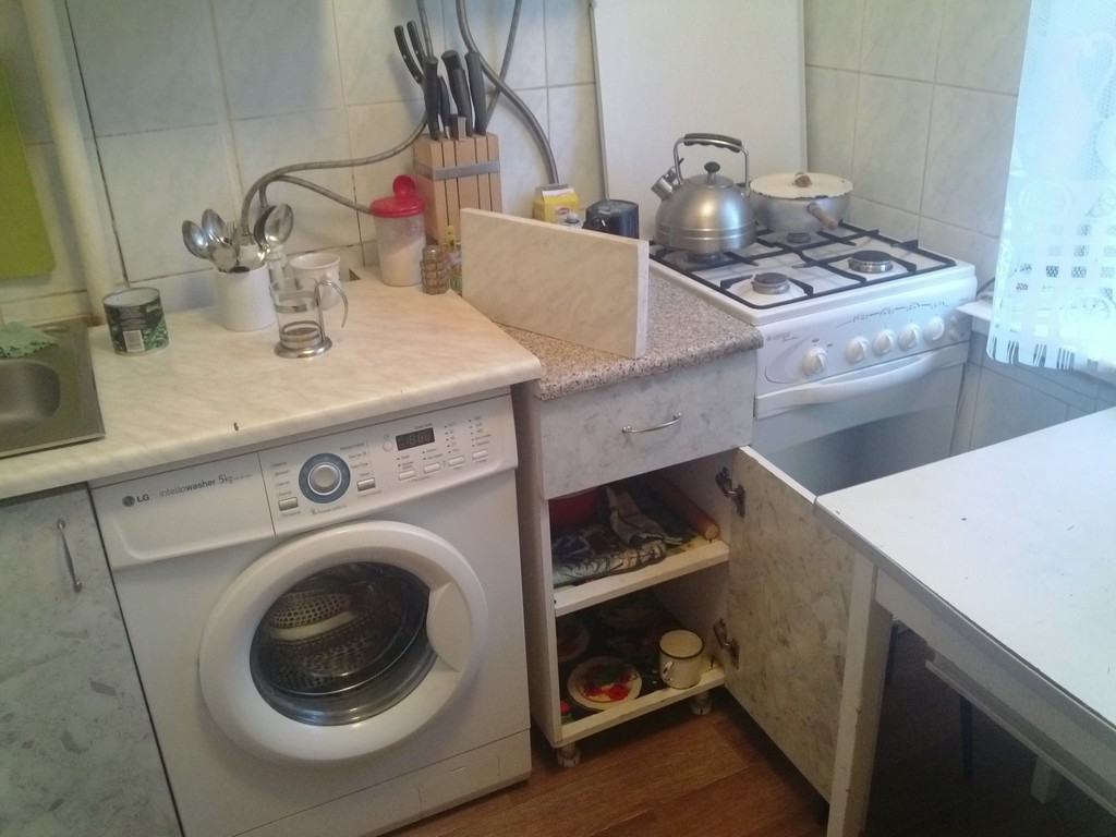 Установил и закрепил ботовую часть стола. Купил, установил и подключил стиральную машину LG F10A8HDS (20719 руб.)