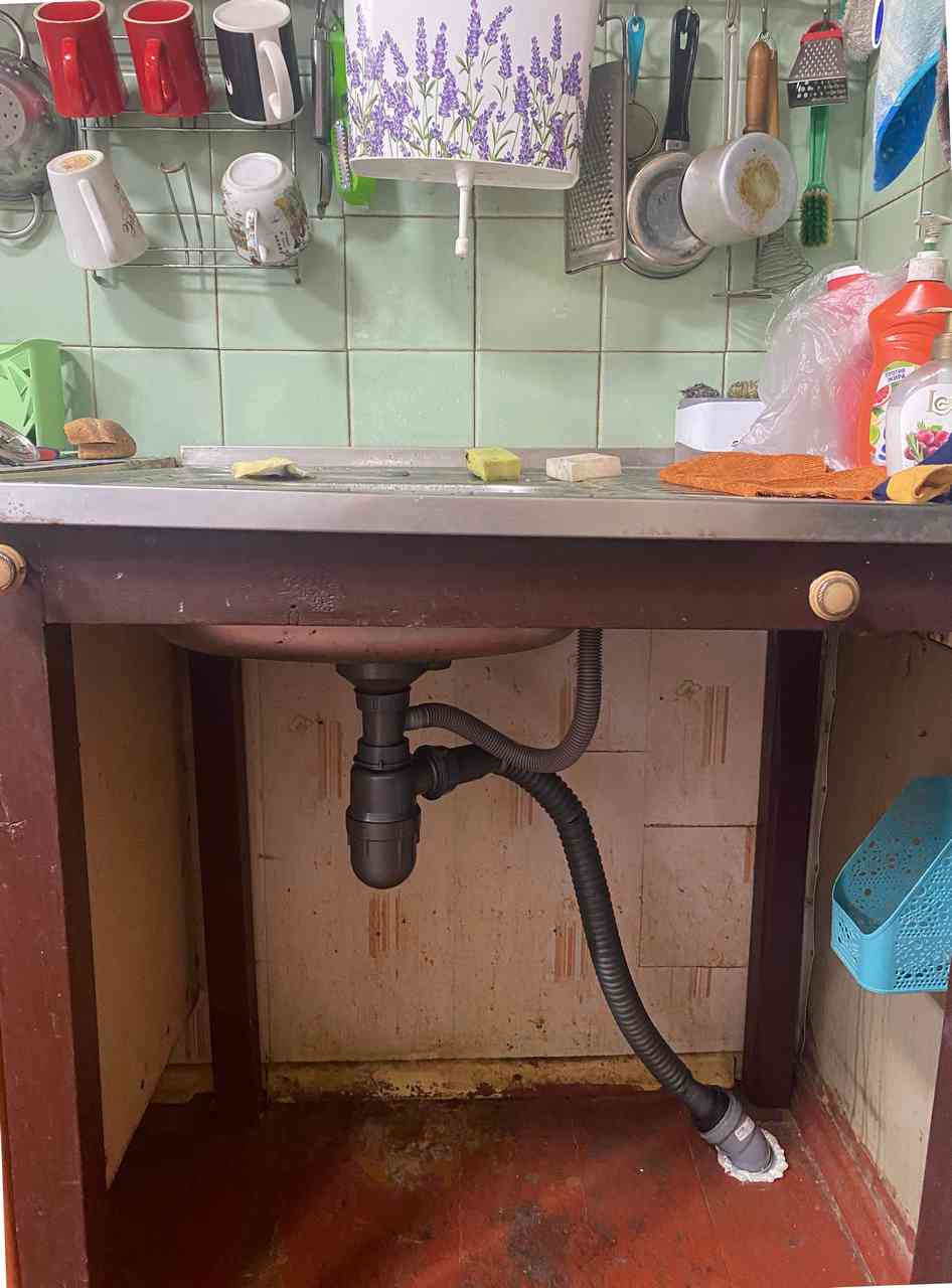 Установил сифон на мойку (Юлдус: 600р.), подключил унитаз, он был у Лёши. Магазин где база у моста: для унитаза выпуск и арматура 861р., ВДНХ: герметик + переход с50на40 + крепление в пол 214р.