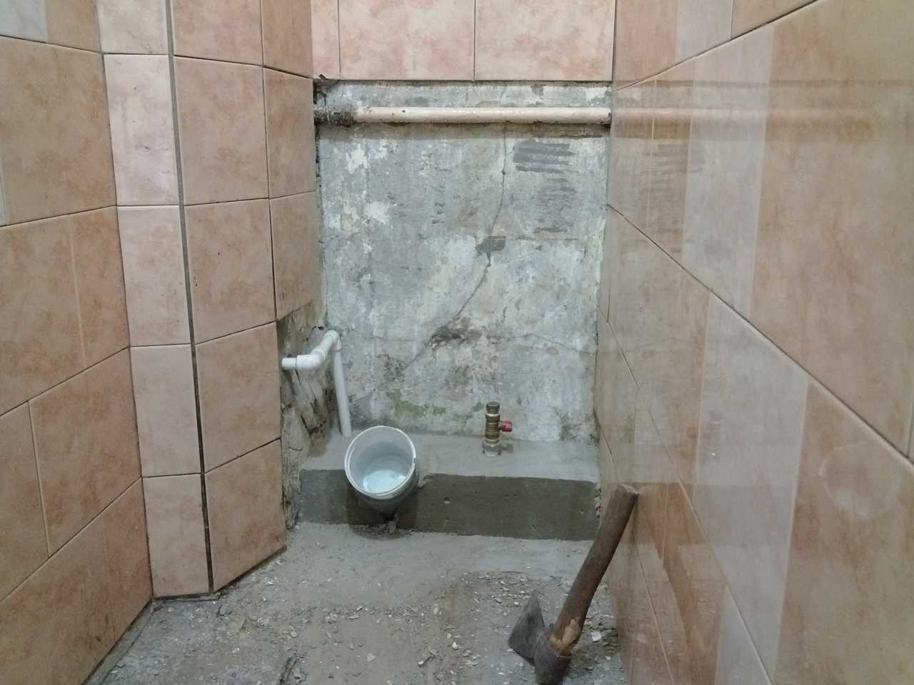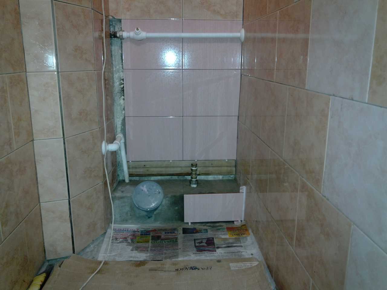 В туалете установил канализацию (пластик) - долго мучался с чугуниной, она была лопнутой снизу как ласточкин хвост. Слева за стенкой стояк ХВ.